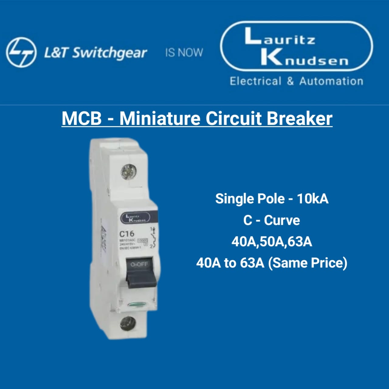 L&T – MCB – Miniature Circuit Breaker Single Pole 10kA (40A to 63A – same price) C-curve.